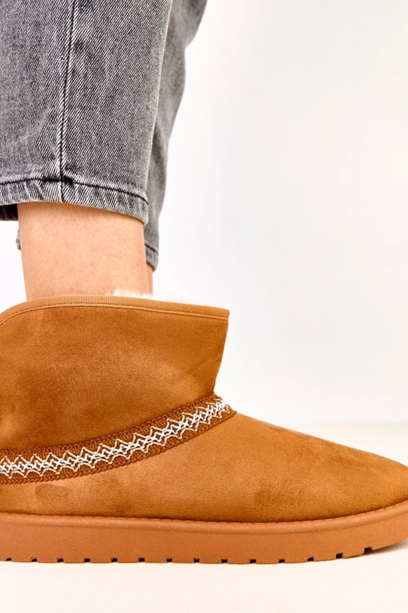 Karamellfarbene niedrige Schneestiefel aus Kunstvelours, Karolla