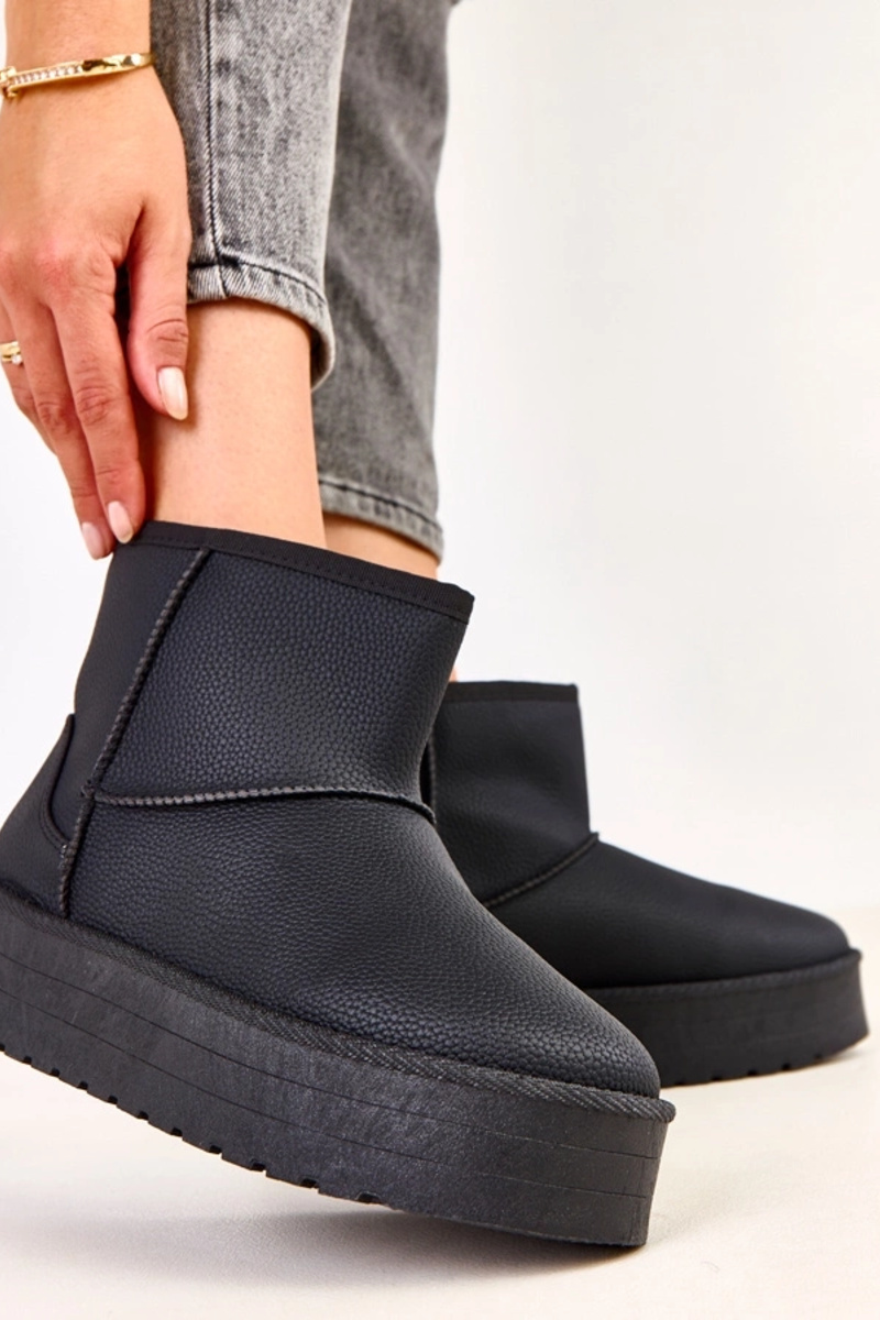 Schwarze niedrige Schneestiefel mit Plateausohle aus Kunstleder, Reinol