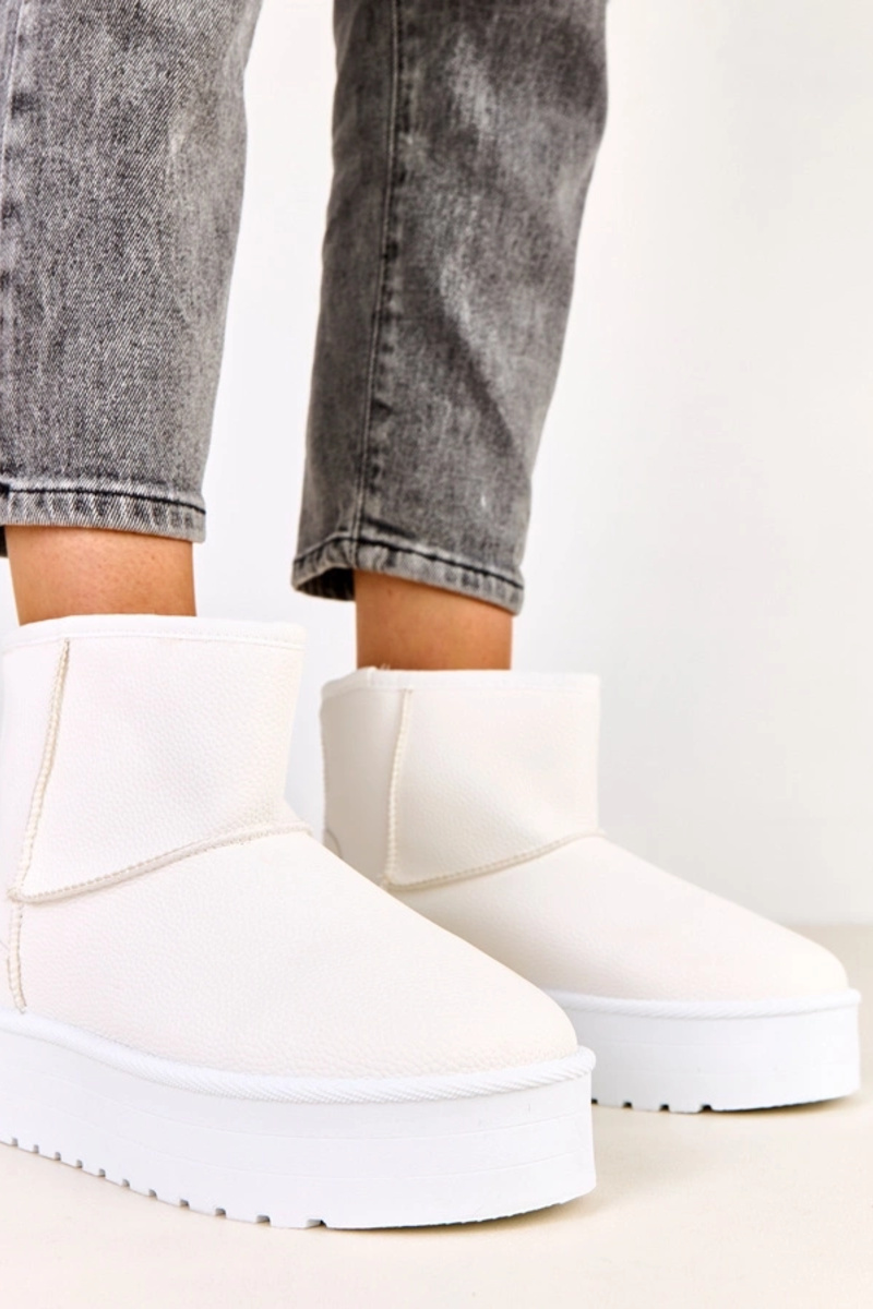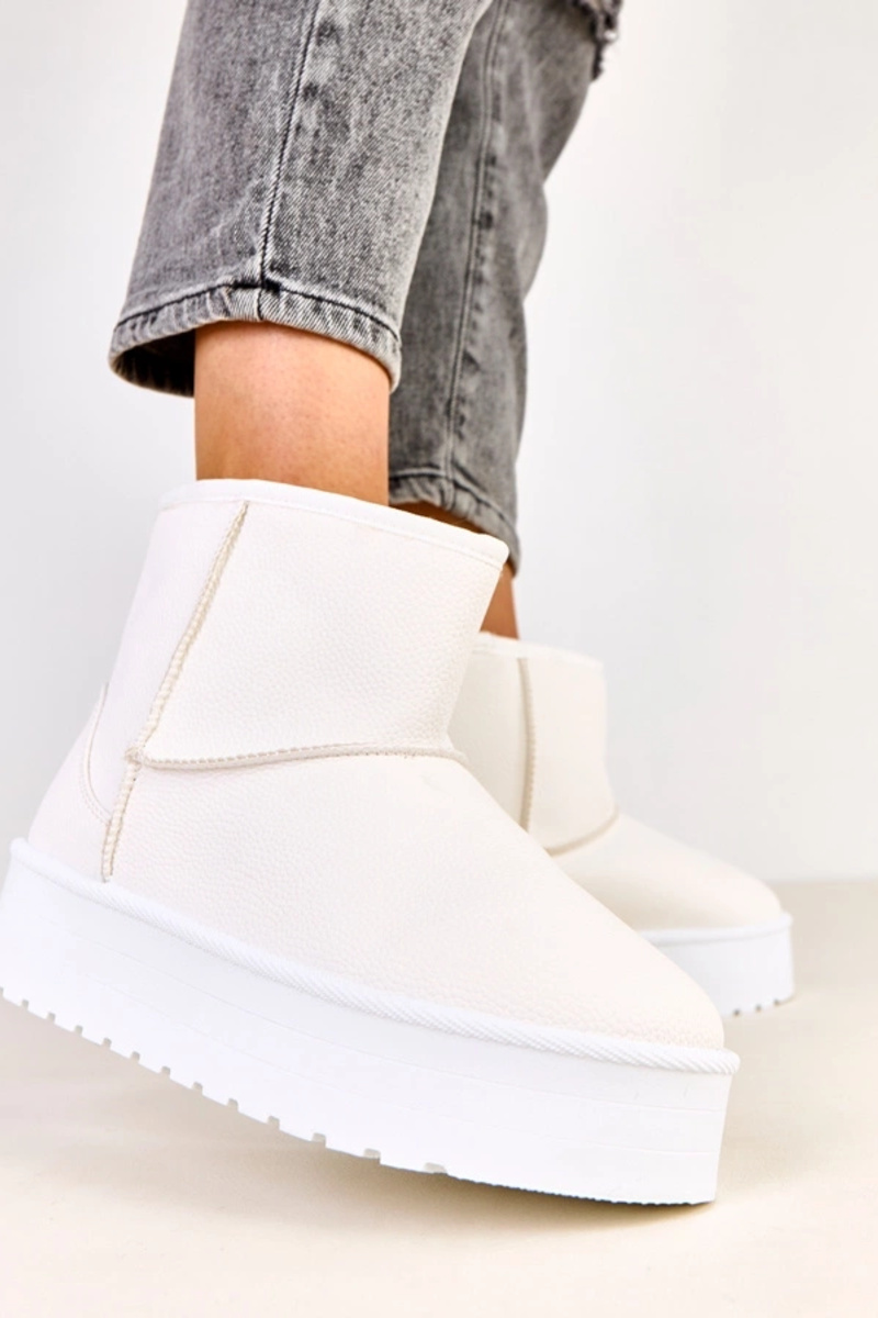 Weiße niedrige Schneestiefel mit Plateausohle aus Kunstleder, Reinol