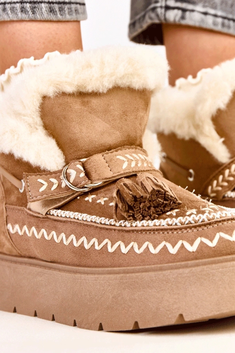 Hellbraune Schneestiefel mit Plateausohle und Quasten, Maurisa