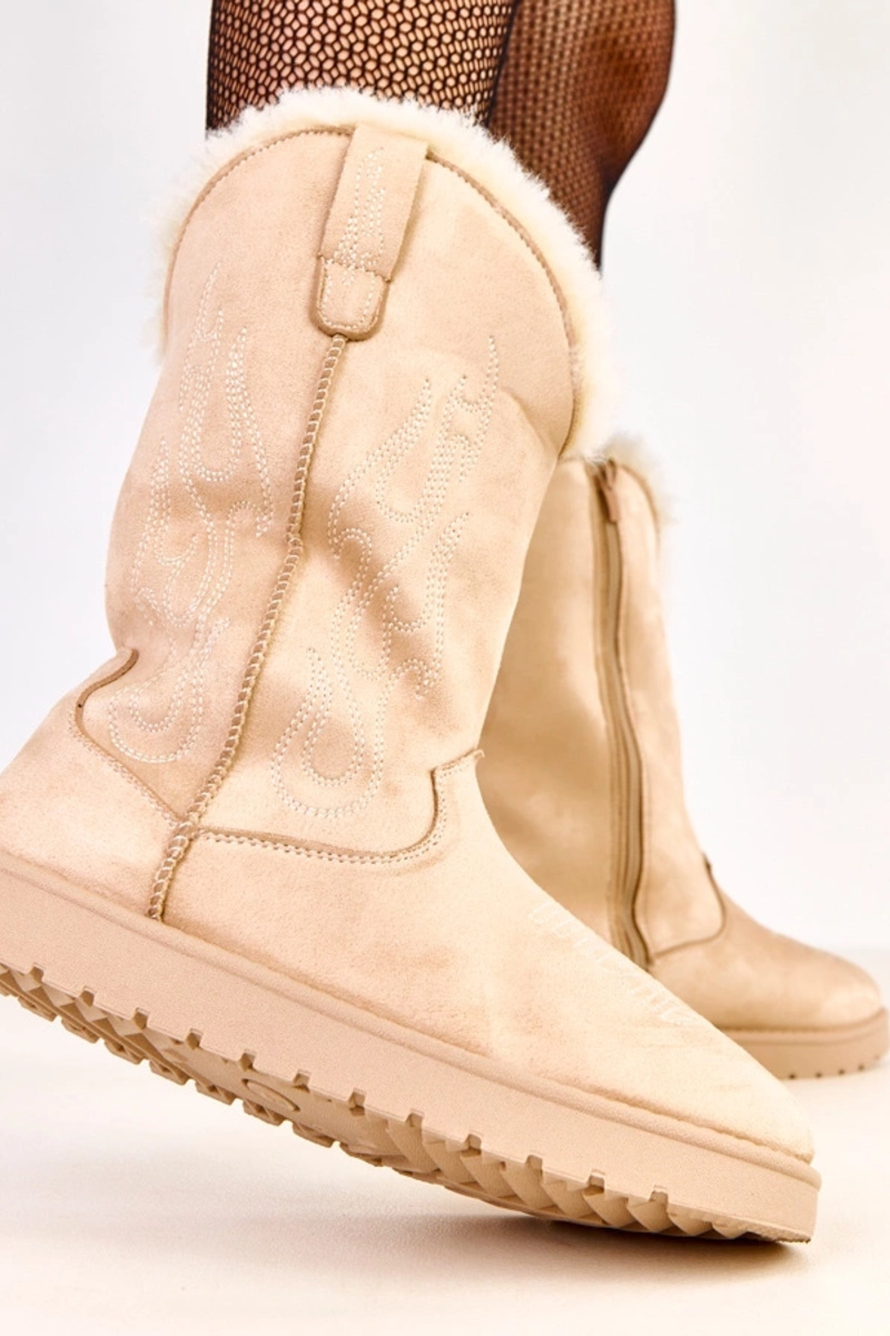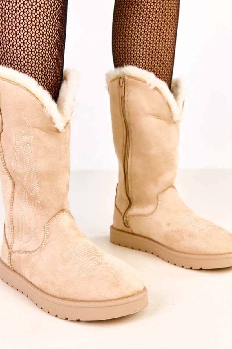Beige Schneestiefel mit Stickerei an der Schaft Darena
