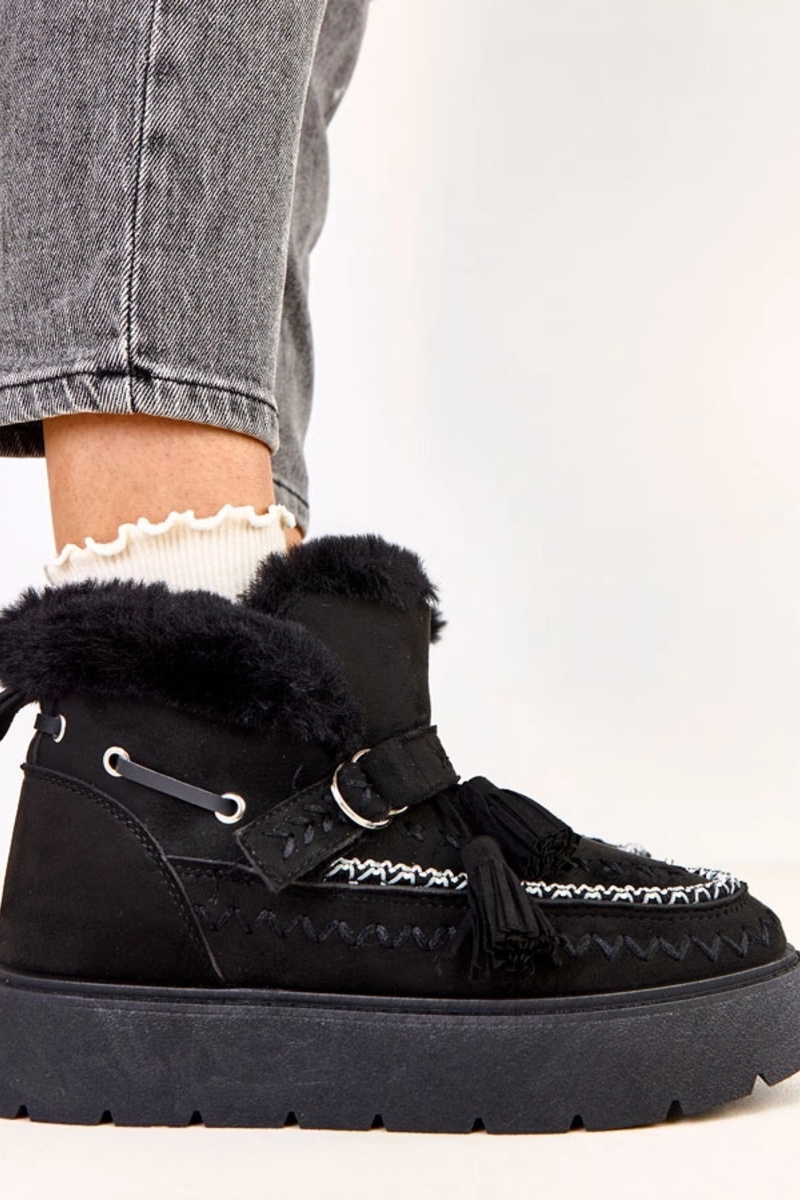 Schwarze Schneestiefel auf Plattform mit Fransen Maurisa