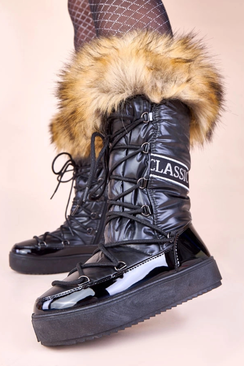 Schwarze eskimotaugliche Schneestiefel mit Fell Malida