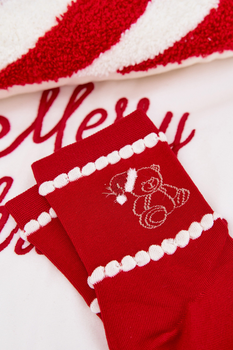 Socken Feminin INeihnachten Teddybären Im Cover INeihnachtsmanna rote Farbe