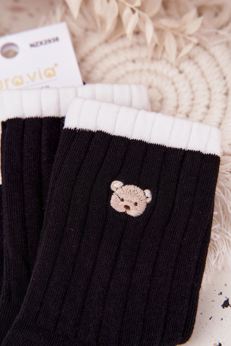 Damen Baumwollstrümpfe mit Touristenbären, schwarz