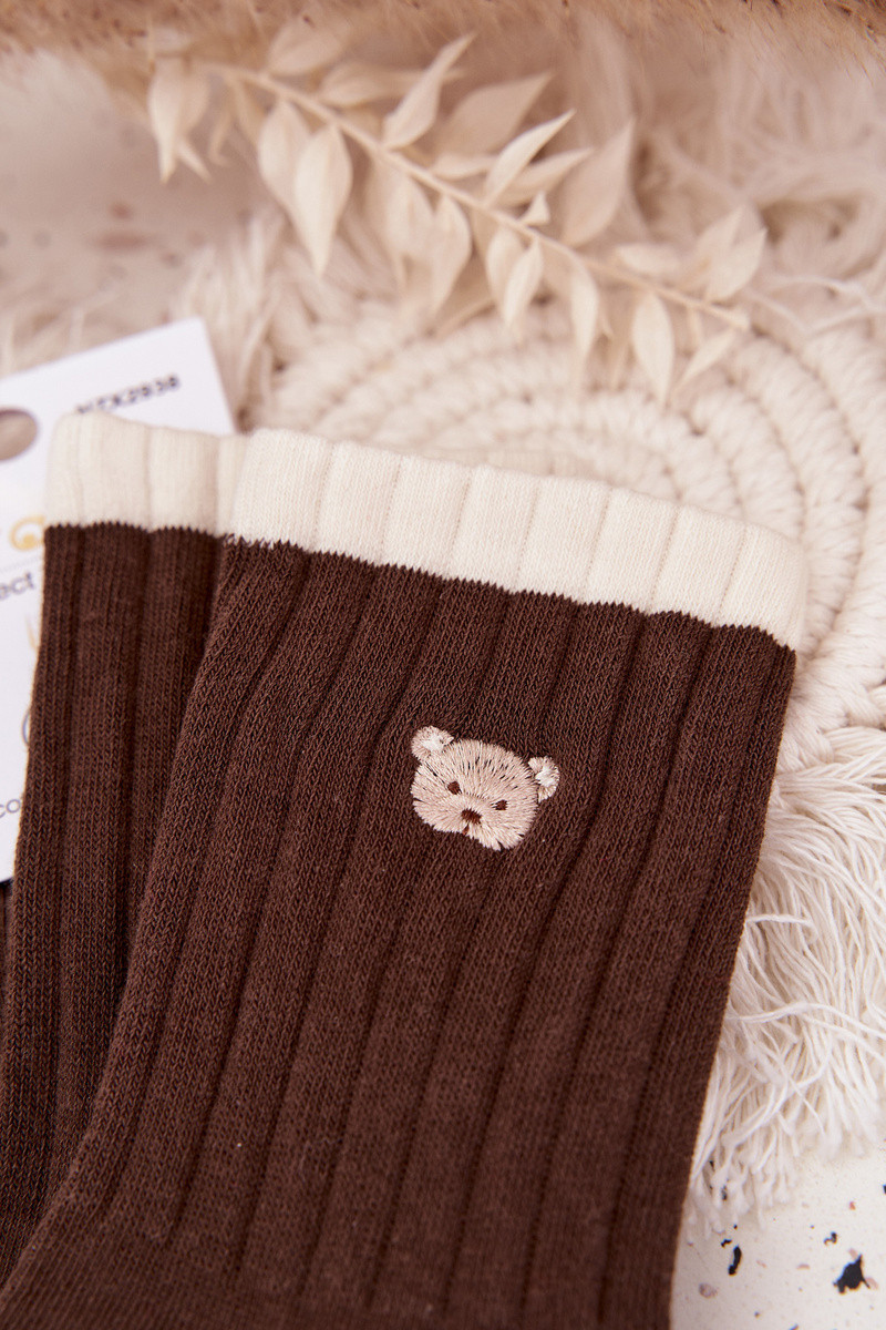 Damen Baumwollstrümpfe mit Touristenbären, schokoladenbraun