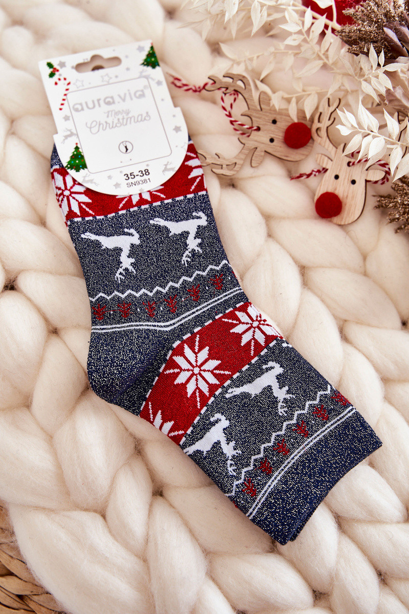 INeihnachtssocken für Damen mit Glanz Rentier Dunkelblau