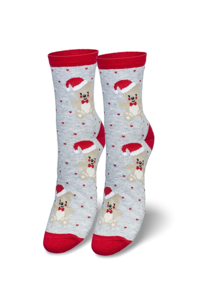 Damen Weihnachtssocken mit Teddybären und Weihnachtsmann grau