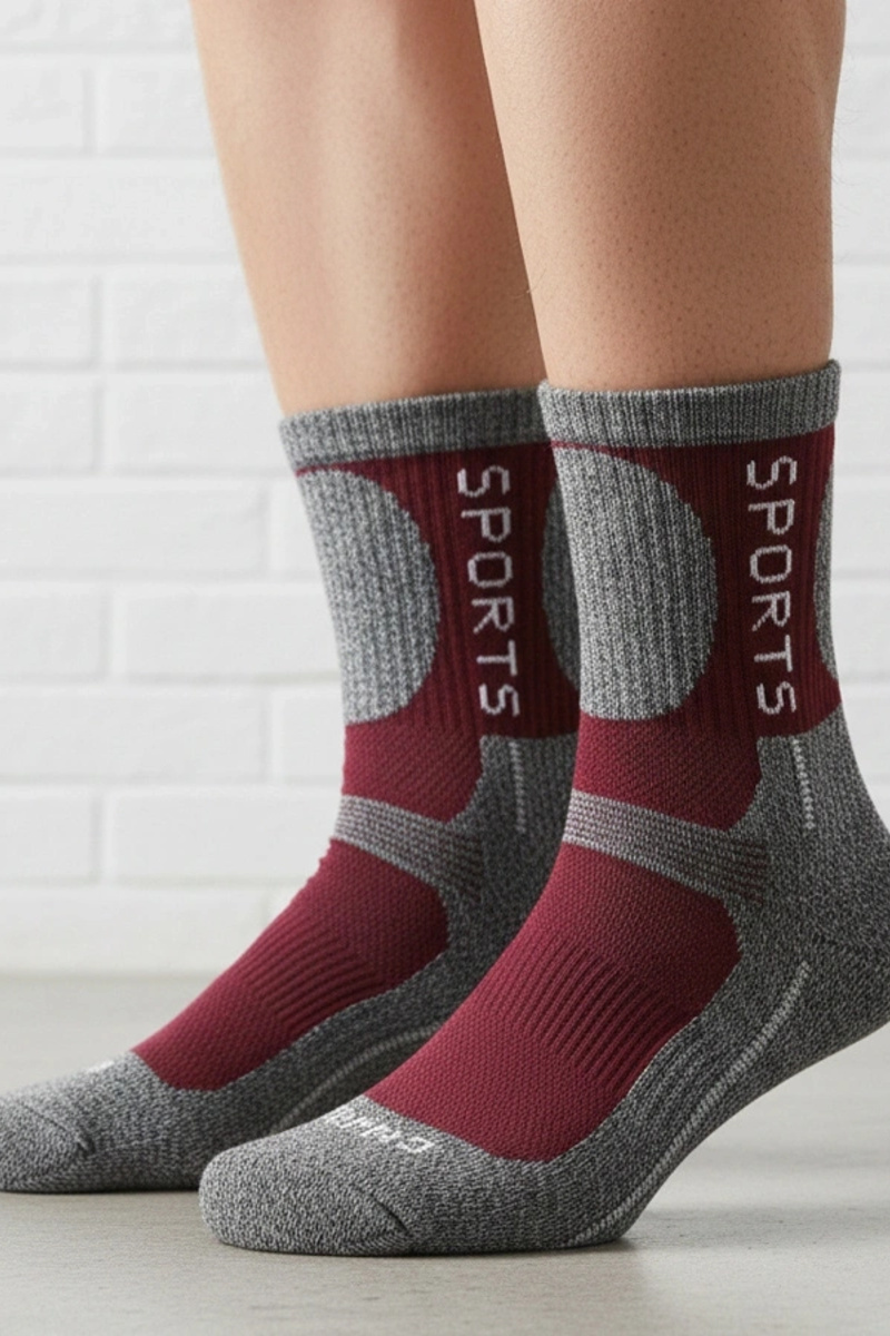 Graue warme Socken mit burgunder Akzent Siera