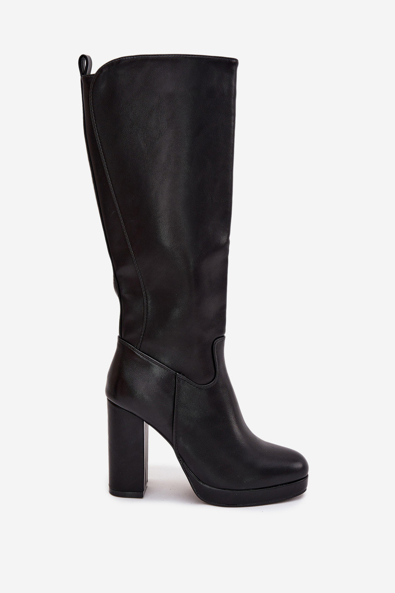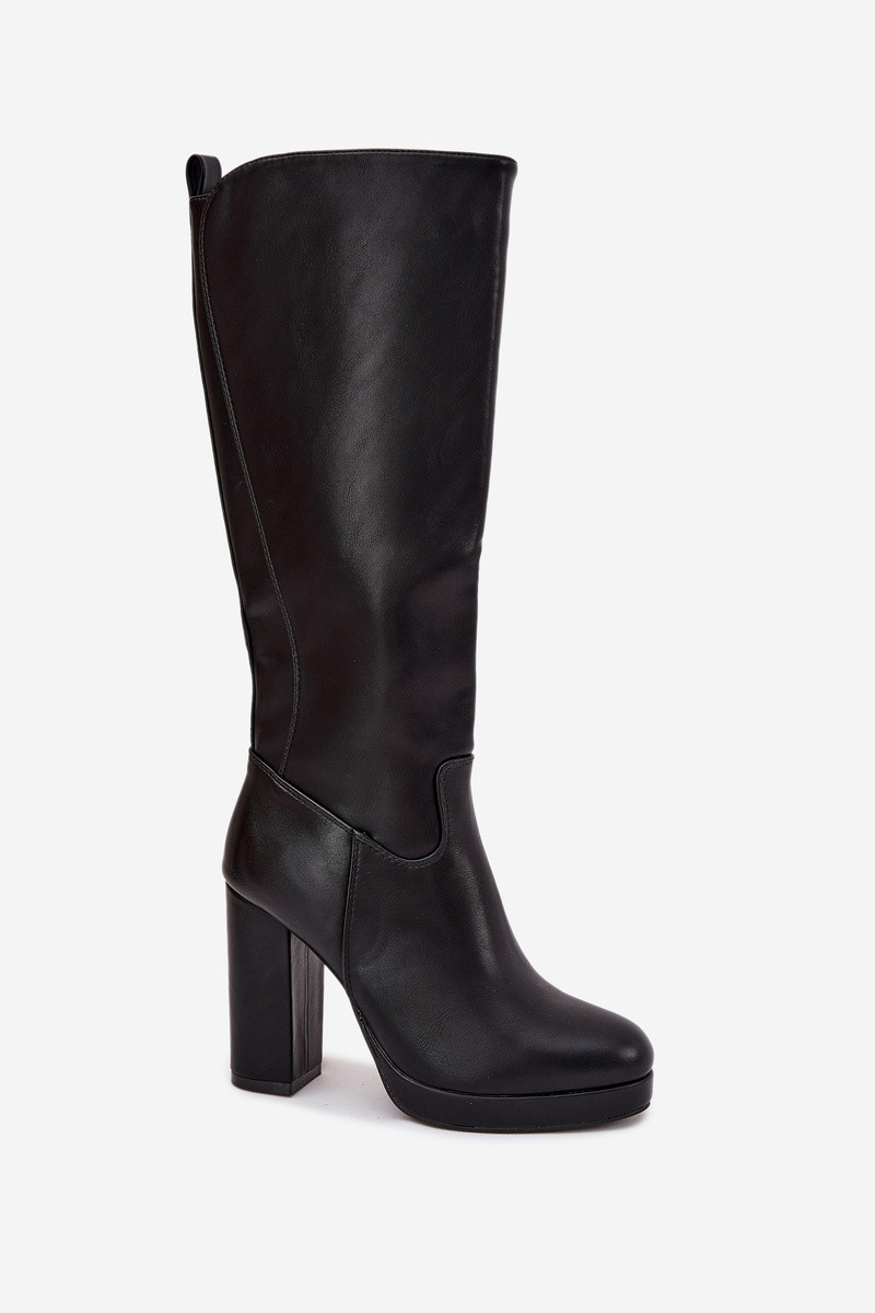 Damen kniehohe Stiefel mit Absatz, aus Eco-Leder, schwarze Farbe Thalina