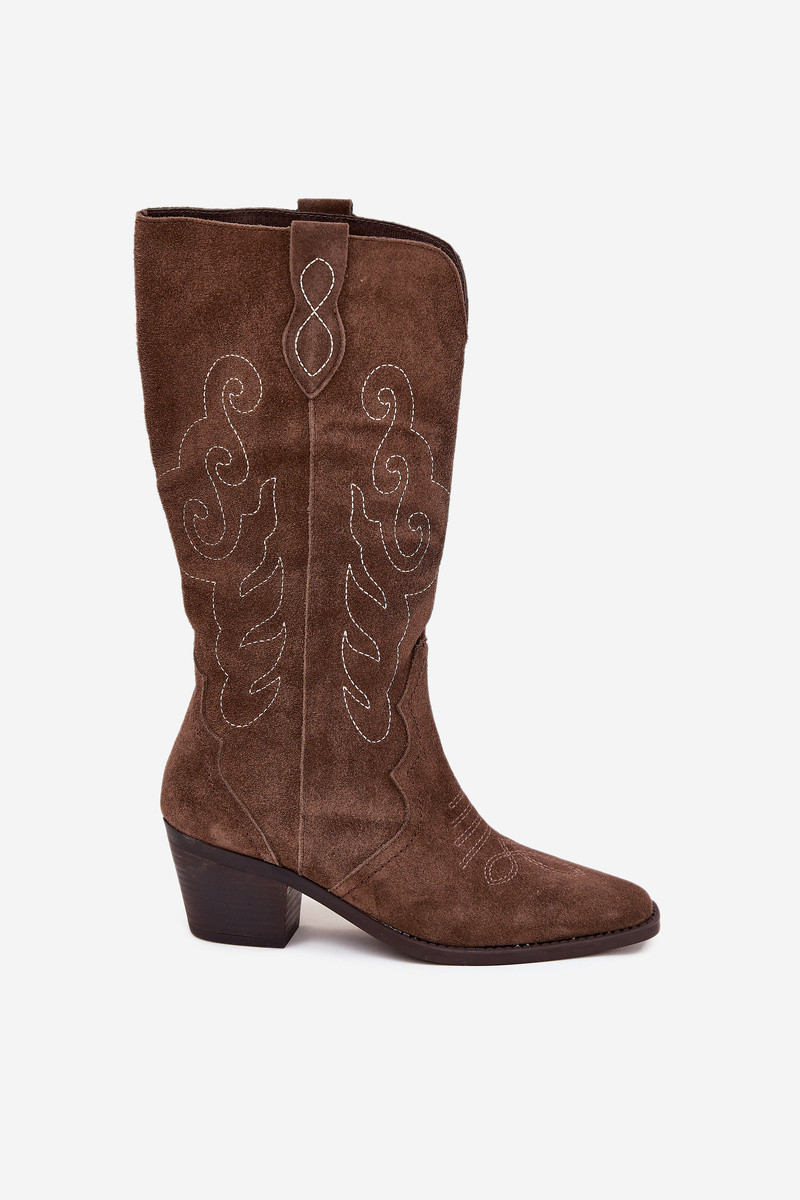 Damen lange Cowboy-Stiefel aus Wildleder mit Absatz, braun, Karira