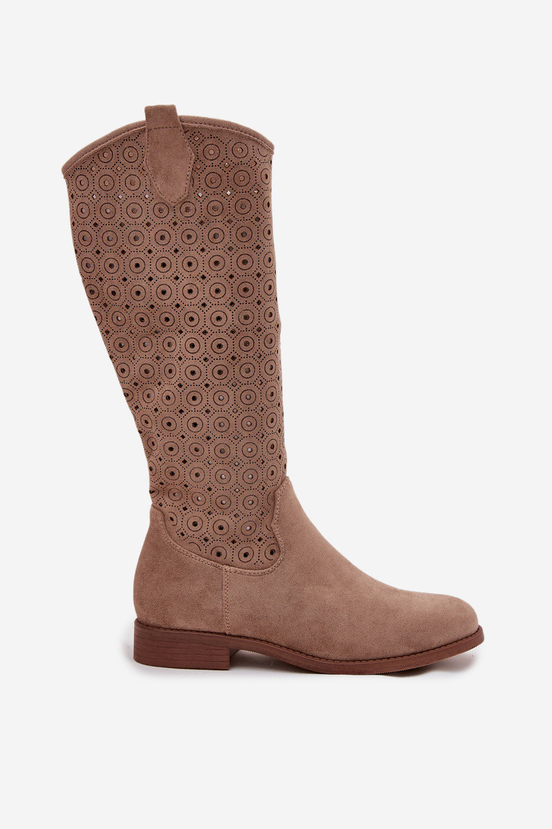 Damenstiefel mit breiten Absätzen mit durchbrochenen Elementen S.Barski HY52-531 Beige