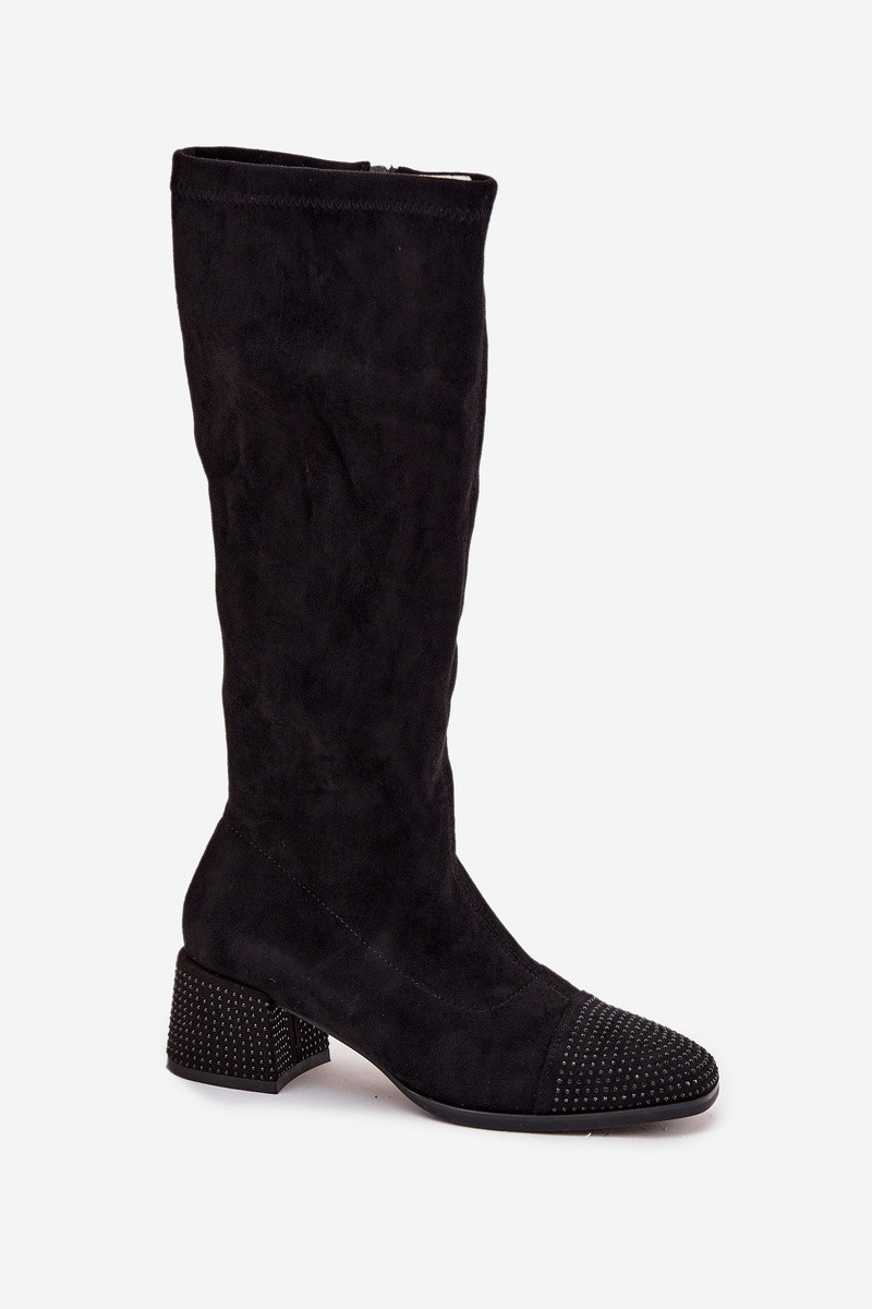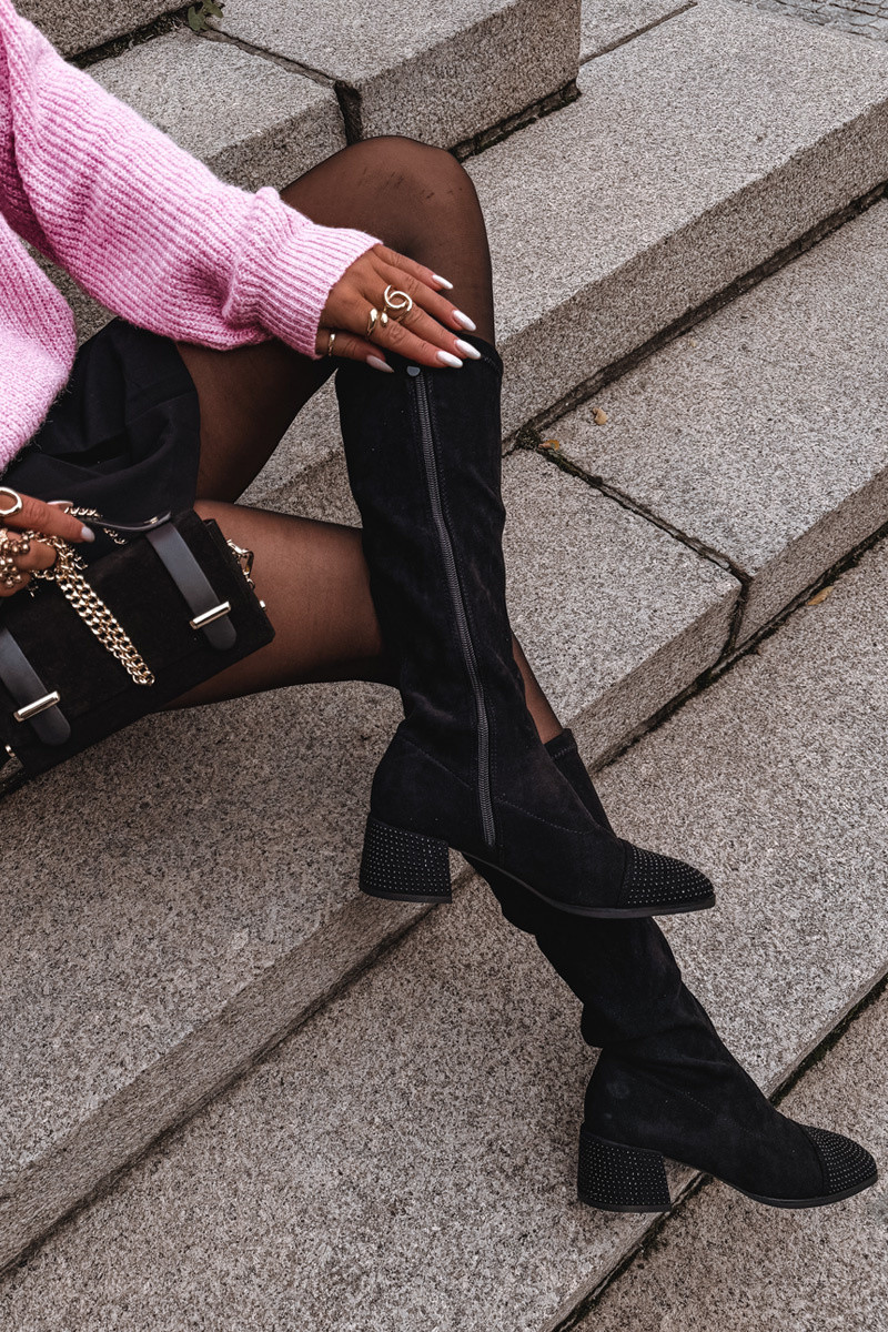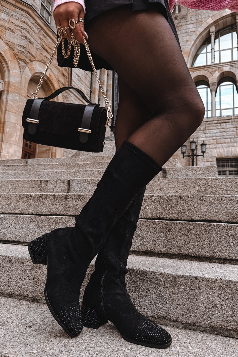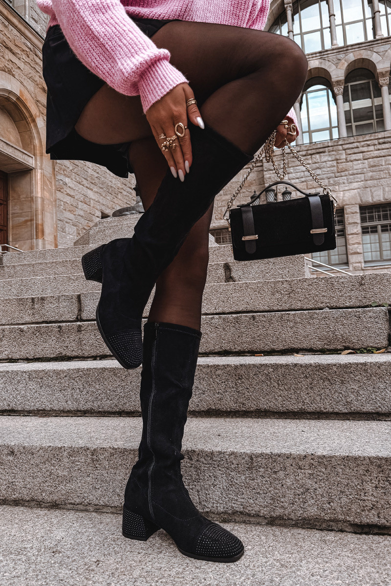 Damen Stiefel mit Klocke-Dekoration aus Kunstvelours in Schwarz Ivanna