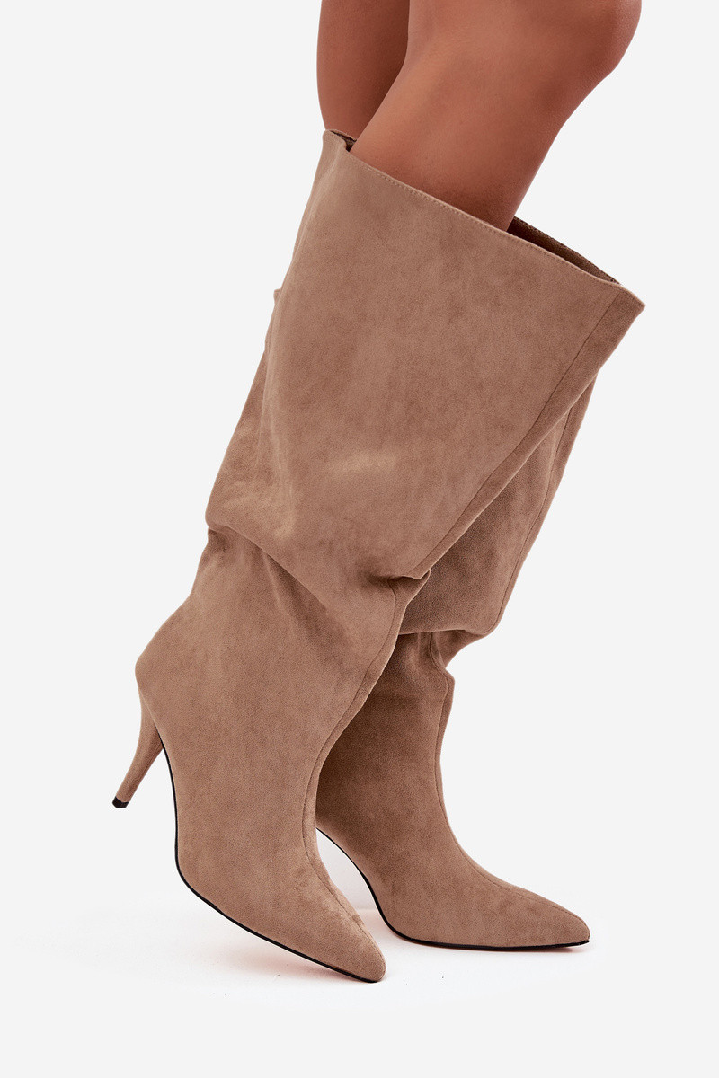 Damen Stiefel im Slipper-Stil mit dünnen Absätzen aus Kunstvelours in Sandfarbe Noretta