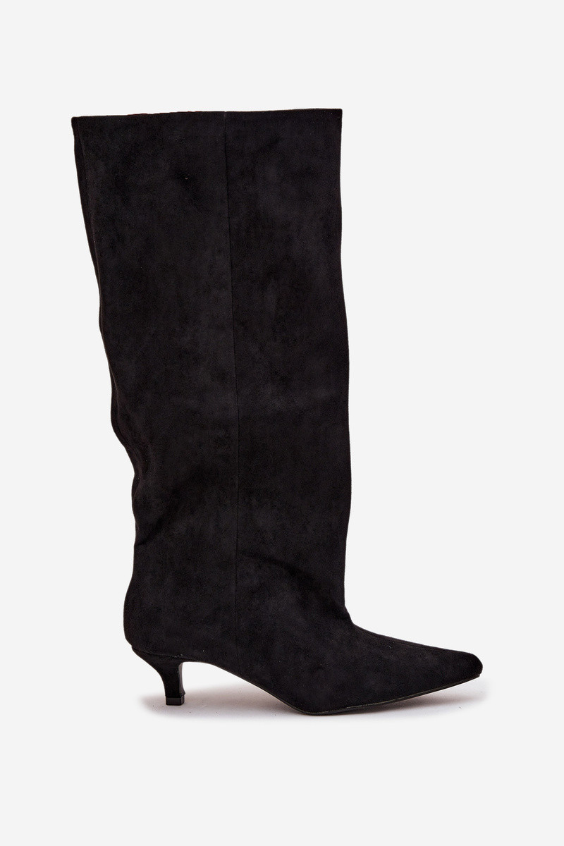 Damen Stiefel mit Absätzen aus Kunstvelours in Schwarz Pheona