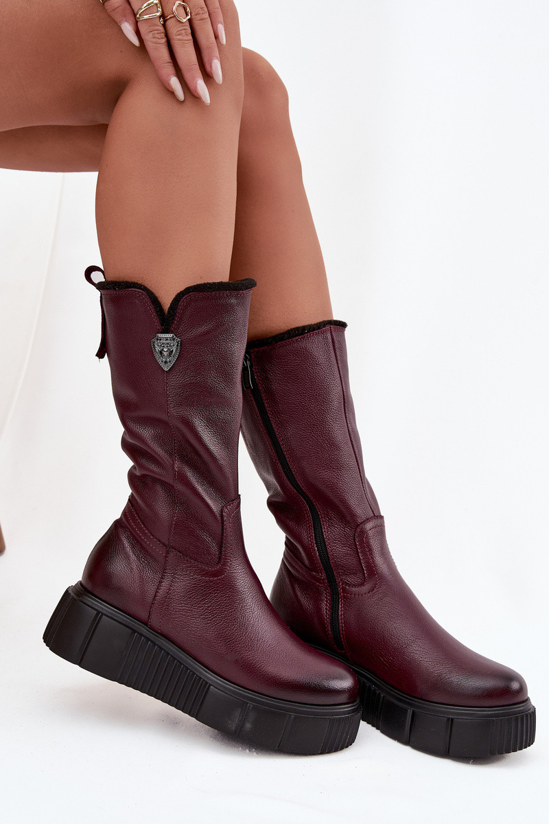 Damen Overknees aus Kunstleder mit Wolle Zazoo 70121 bordeaux