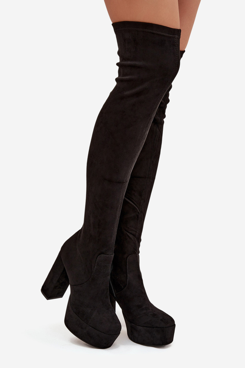Overknee-Stiefel mit Absatz und Plateau aus Kunstwildleder in Schwarz "Amareen"