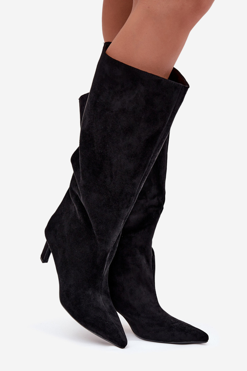 Damenstiefel aus Kunstwildleder, Schlupfmodell mit dünnen Absätzen, schwarz Phelin