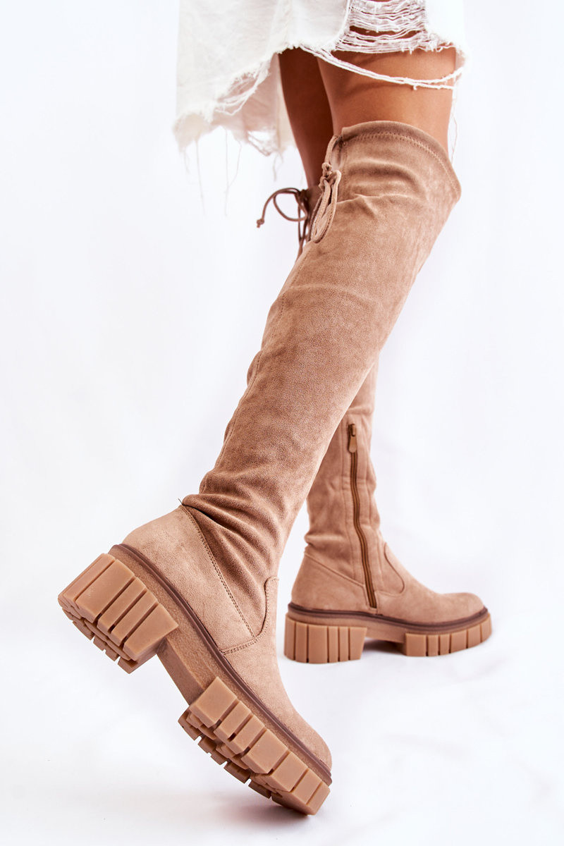 Damen lange Stiefel aus Naturwildleder über das Knie in Sandfarbe Cheera