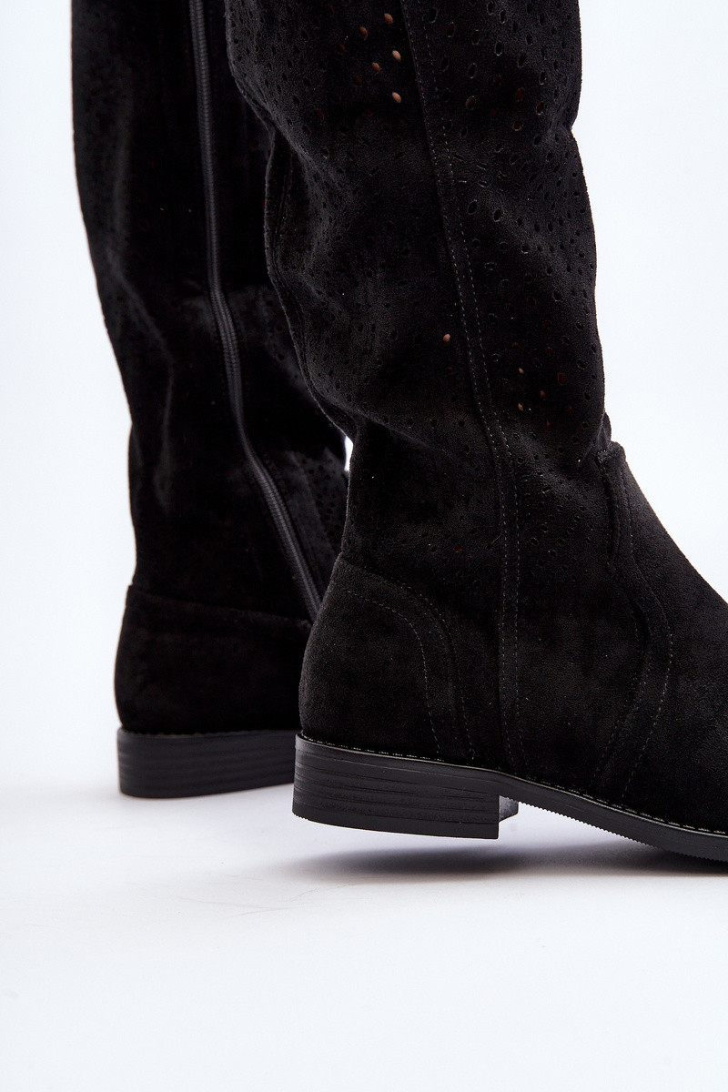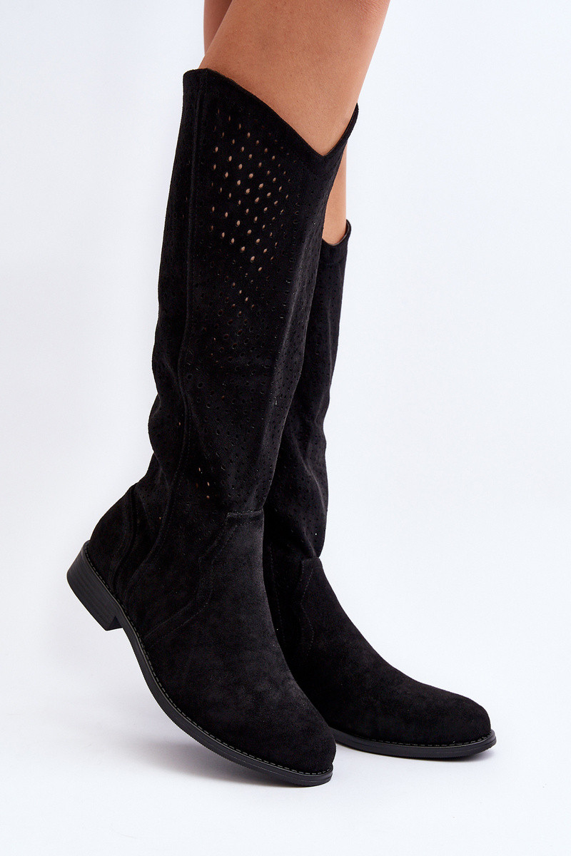 S.Barski HY66-150 mit durchbrochenen Elementen Stiefel mit breiten Absätzen schZuarze Farbe