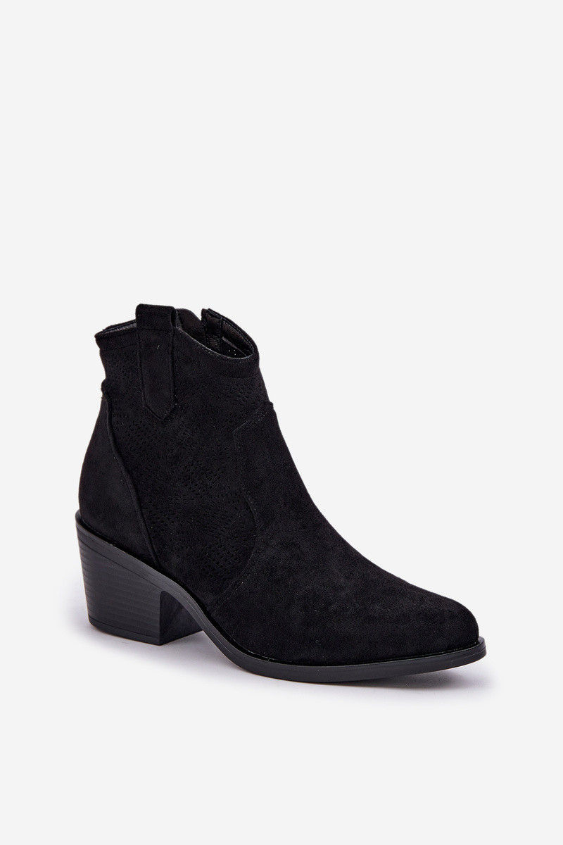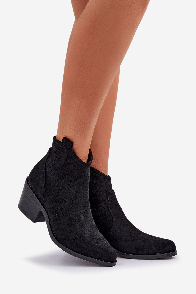Cowboy-Stiefeletten aus Kunstleder mit Lochmuster S.Barski HY51-061 in schwarzer Farbe