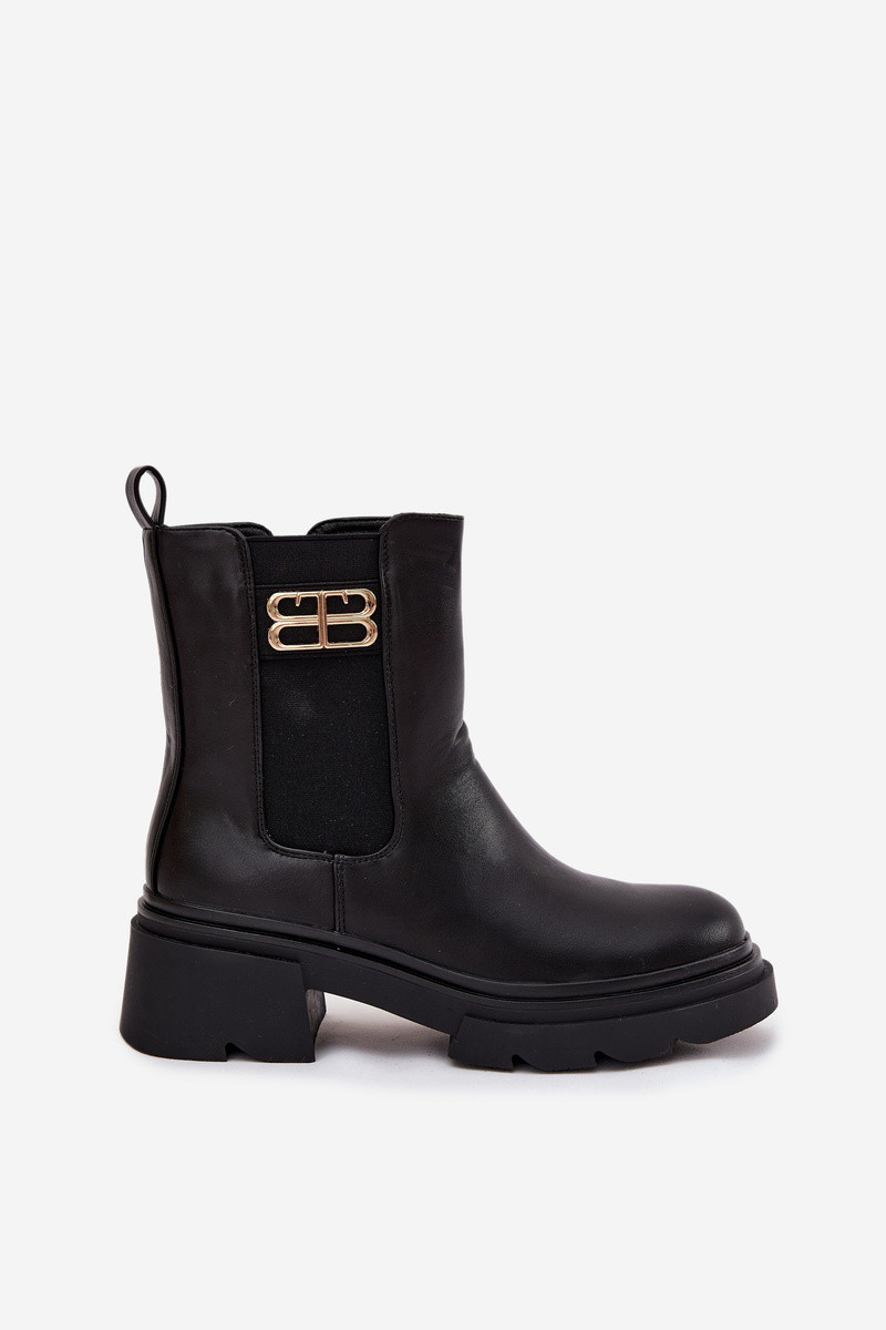 Schwarze warme Damen-Ankle Boots mit goldenen Details Serene