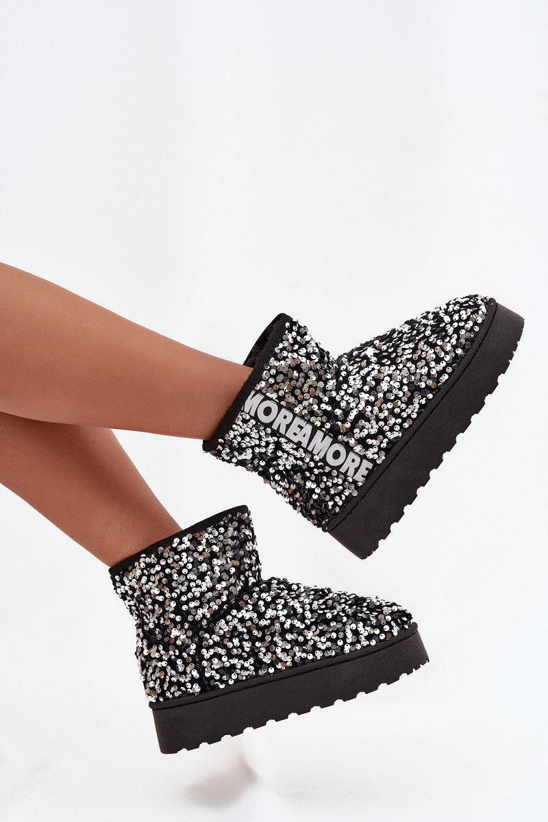 Schneestiefel Feminin mit einer Plattform Mit Glitzer verziert SchZuarz und-Silberfarbe Silmo