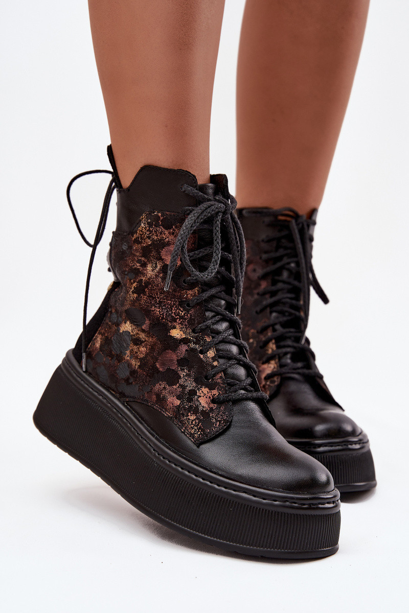 Echte Leder Stiefeletten mit Plattform Tai turiciejka 07086-01 schwarze Farbe