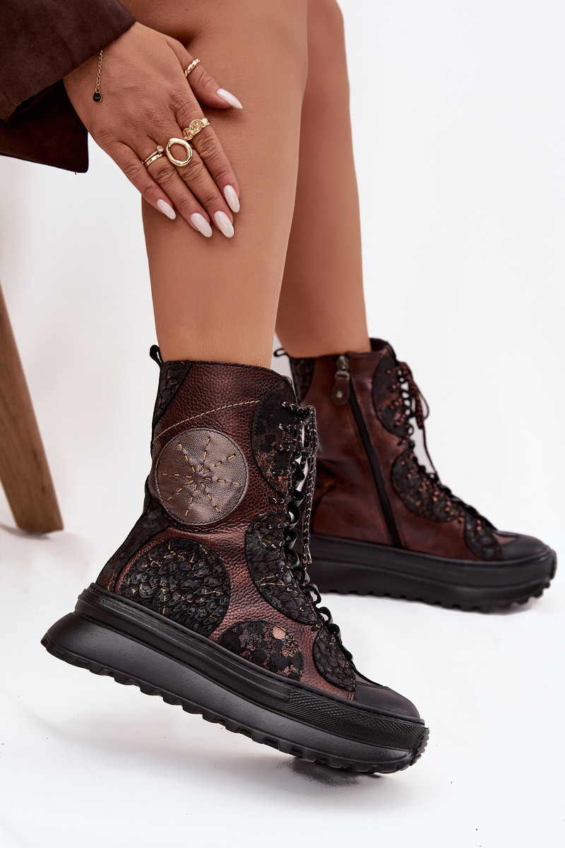 Echte Leder Stiefeletten mit Plattform gefüttert Tai turiciejka 06565-02 braun-goldfarbene Farbe