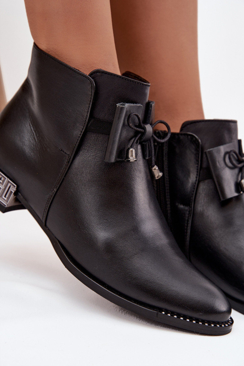 Damenstiefeletten aus natürlichem Leder mit niedrigem Absatz Zazoo 1396 in Schwarz