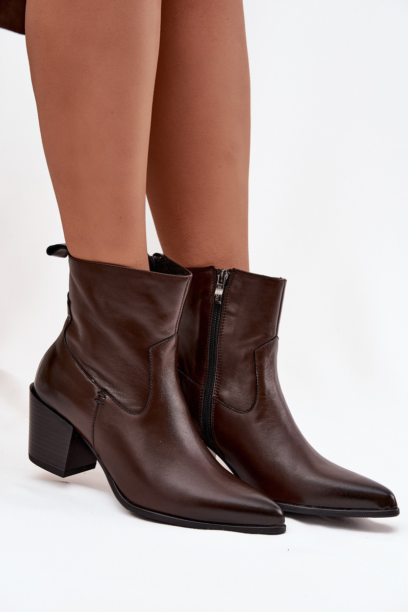 Leder-Cowboy-Stiefeletten für Damen mit Absatz, gefüttert, schokoladenbraun Zazoo 60565