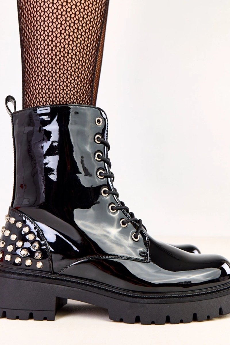 Schwarze lackierte Stiefel mit Glitzer Marsley