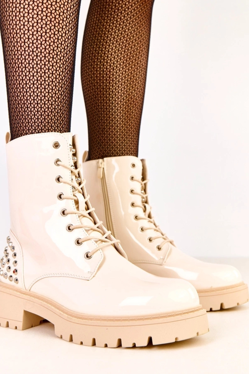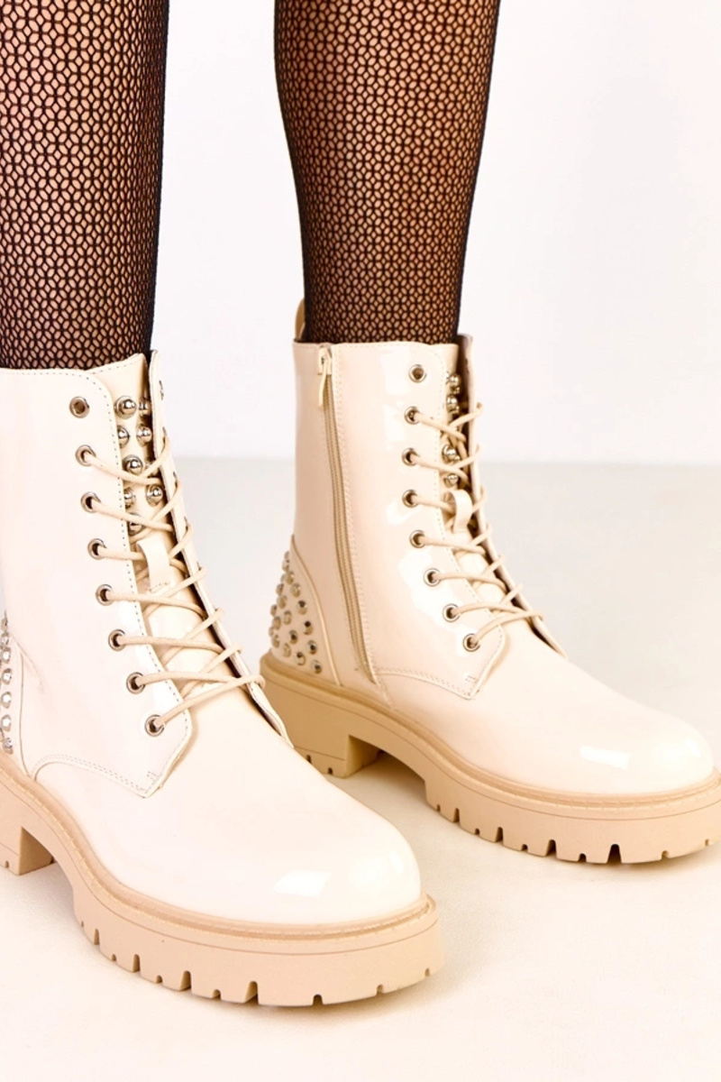 Sandfarbene lackierte Stiefel mit Glitzer Marsley