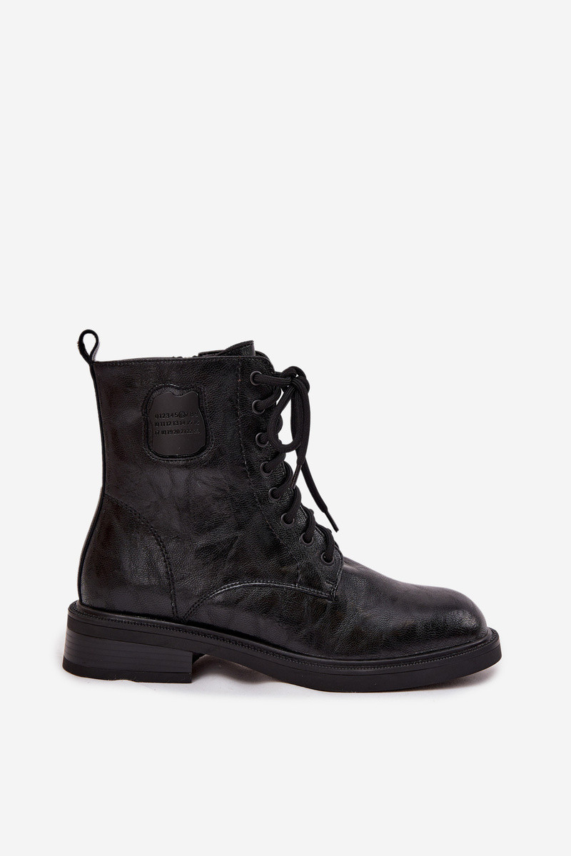 Leder Arbeitsstiefel für Damen mit dekorativen Details Tai turiciejka K7180-01 schwarz
