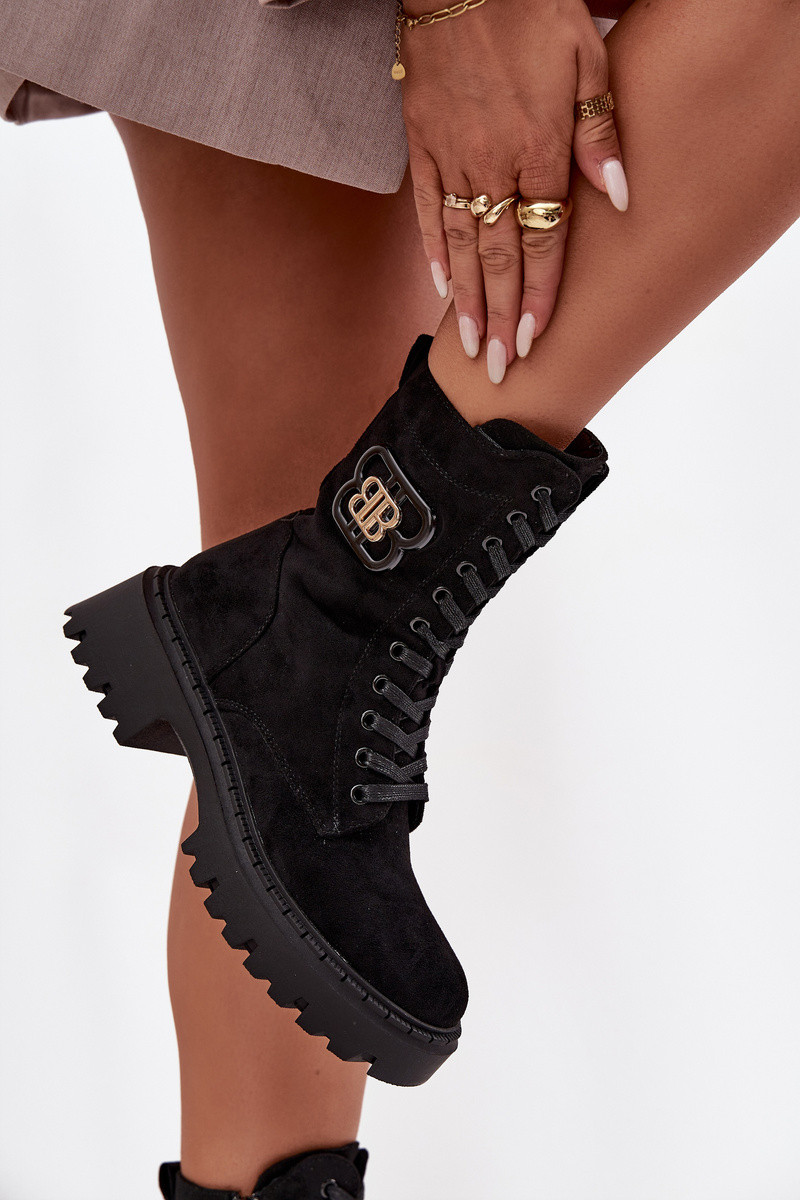 Wärmende Damen Ankle Boots mit dekorativen Elementen in Schwarz Kalindra