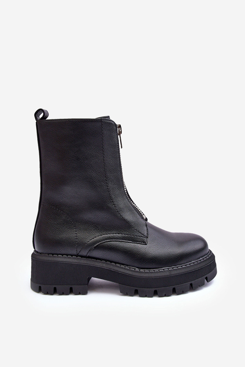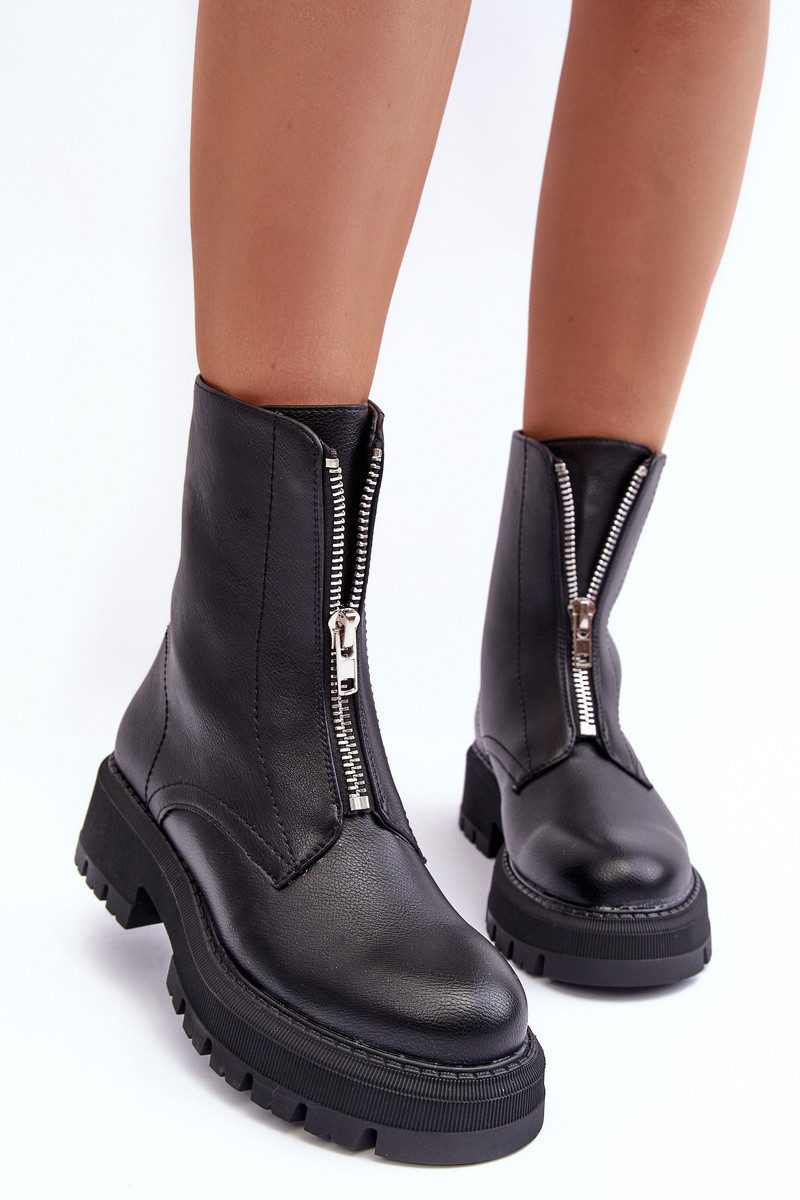 Lederstiefeletten mit breiten Absätzen und Reißverschlüssen in Schwarz Vimal