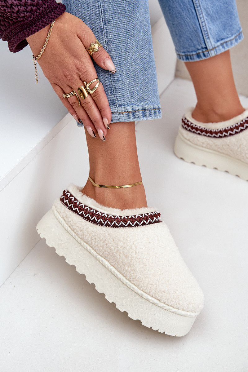 Schneestiefel Hausschuhe mit einer Plattform mit Pelzmantel Typu Baranek elfenbeinfarbe Ovirissa