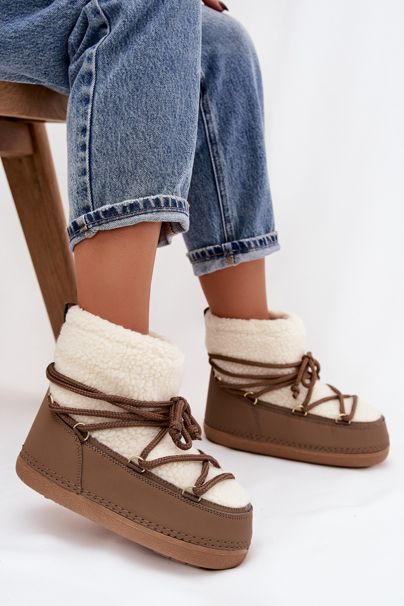 Schneestiefel Feminin mit Pelzmantel Typu Baranek mit Riemen Beige Belira