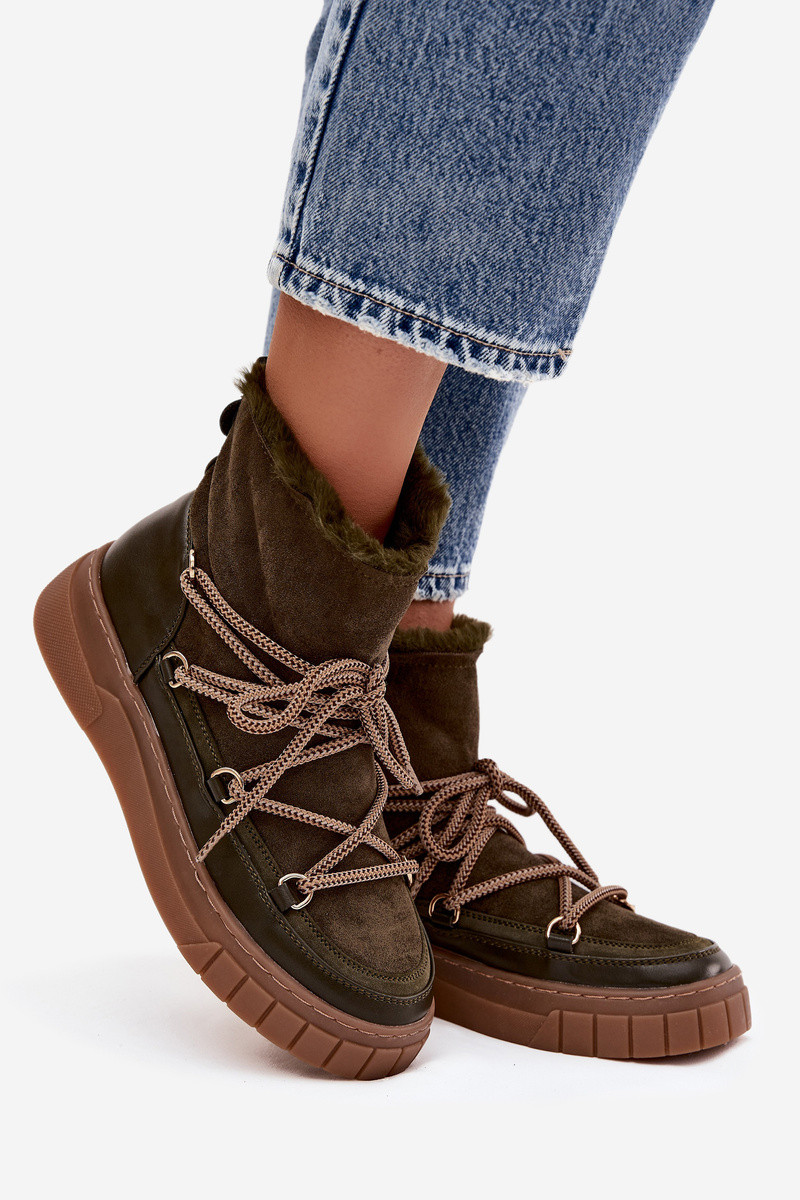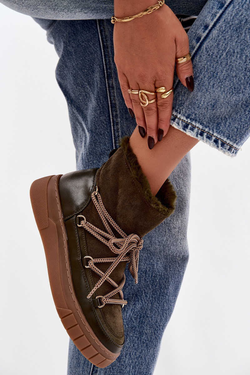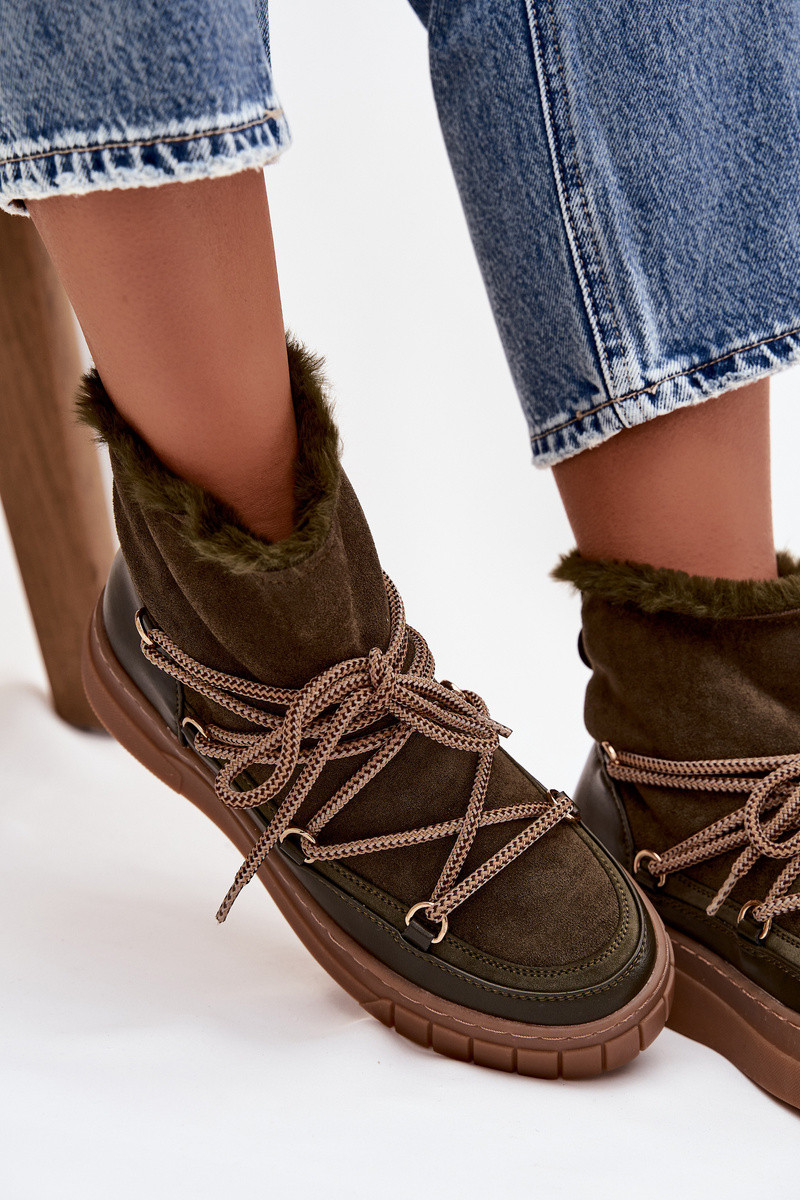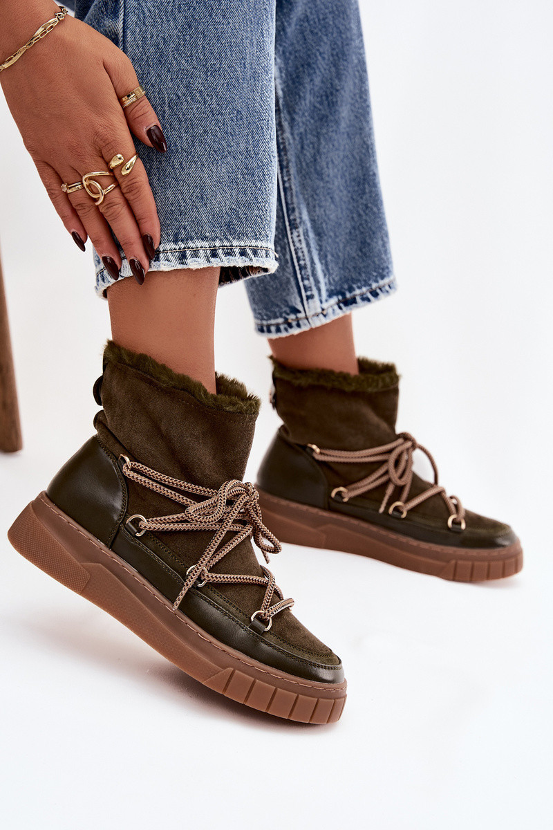 Khaki Damen-Schneestiefel mit stilvollen Details Isalisse