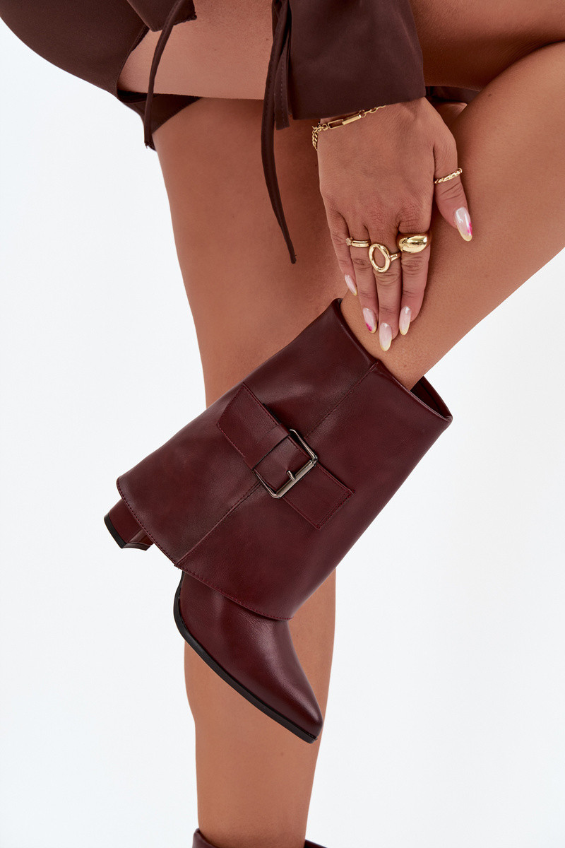 Warmen Stiefeletten mit Absatz, umgeschlagenem Schaft und Schnallen in Bordeaux Ylenara