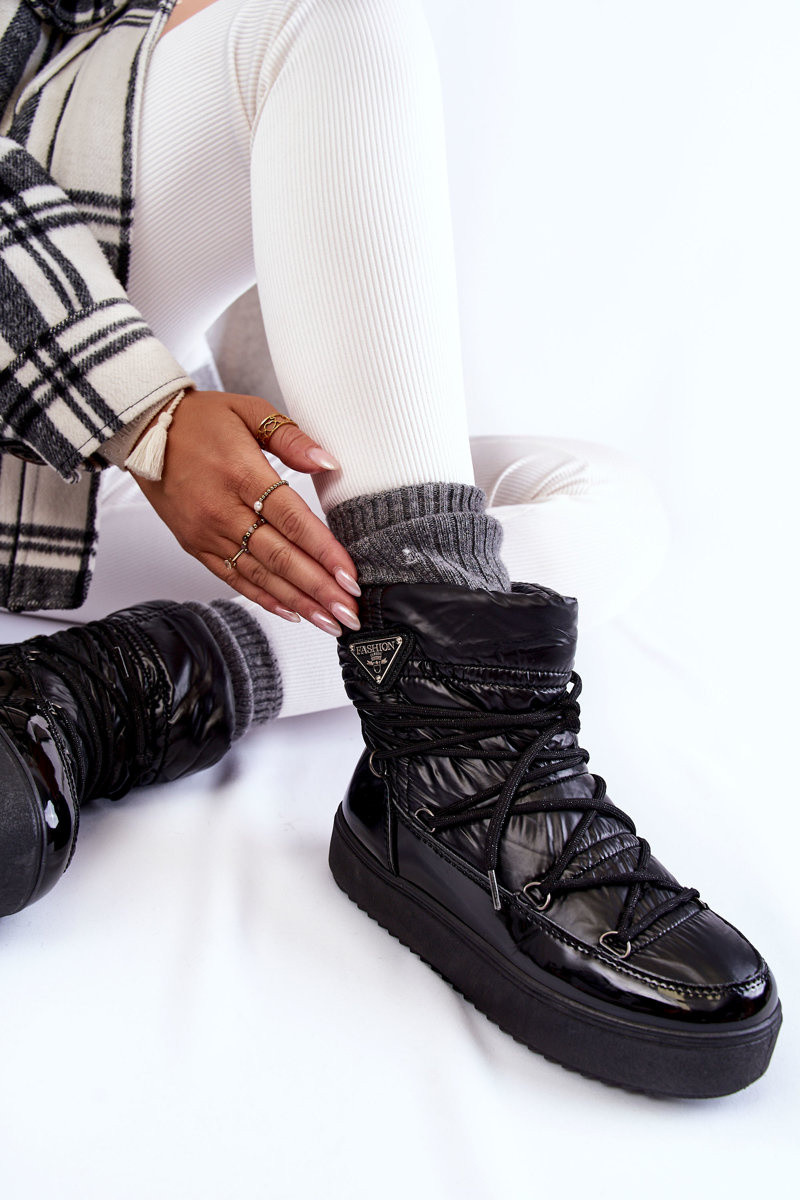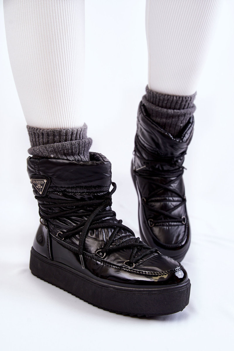 Feminin Modisch Schneestiefel mit Schnürsenkeln schZuarze Farbe Carrios