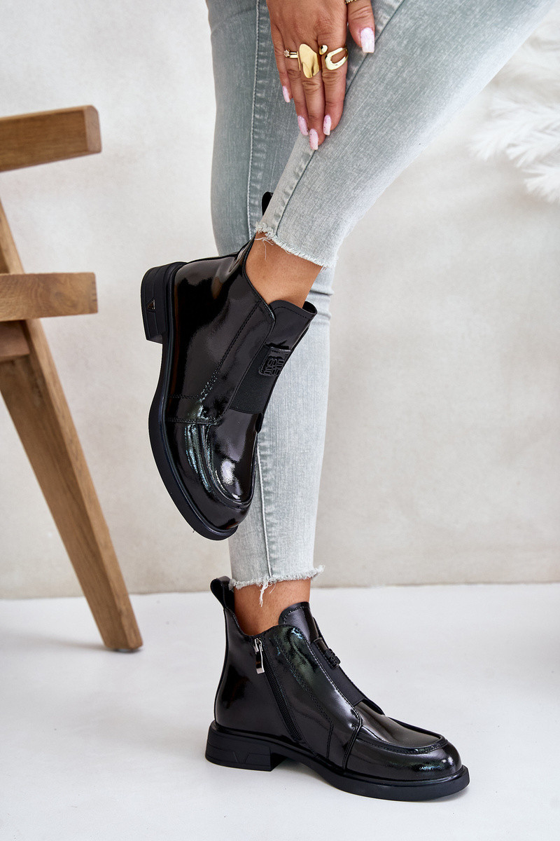 Haut mit Lackeffekt Damenstiefel Zum Schloss D&A JC42-24 schZuarze Farbe