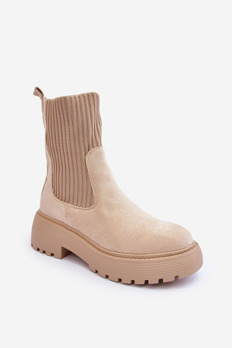 INildlederschuhe mit sockenartiger Innensohle mit einer Plattform Und flache Absätze Beige ReZuam