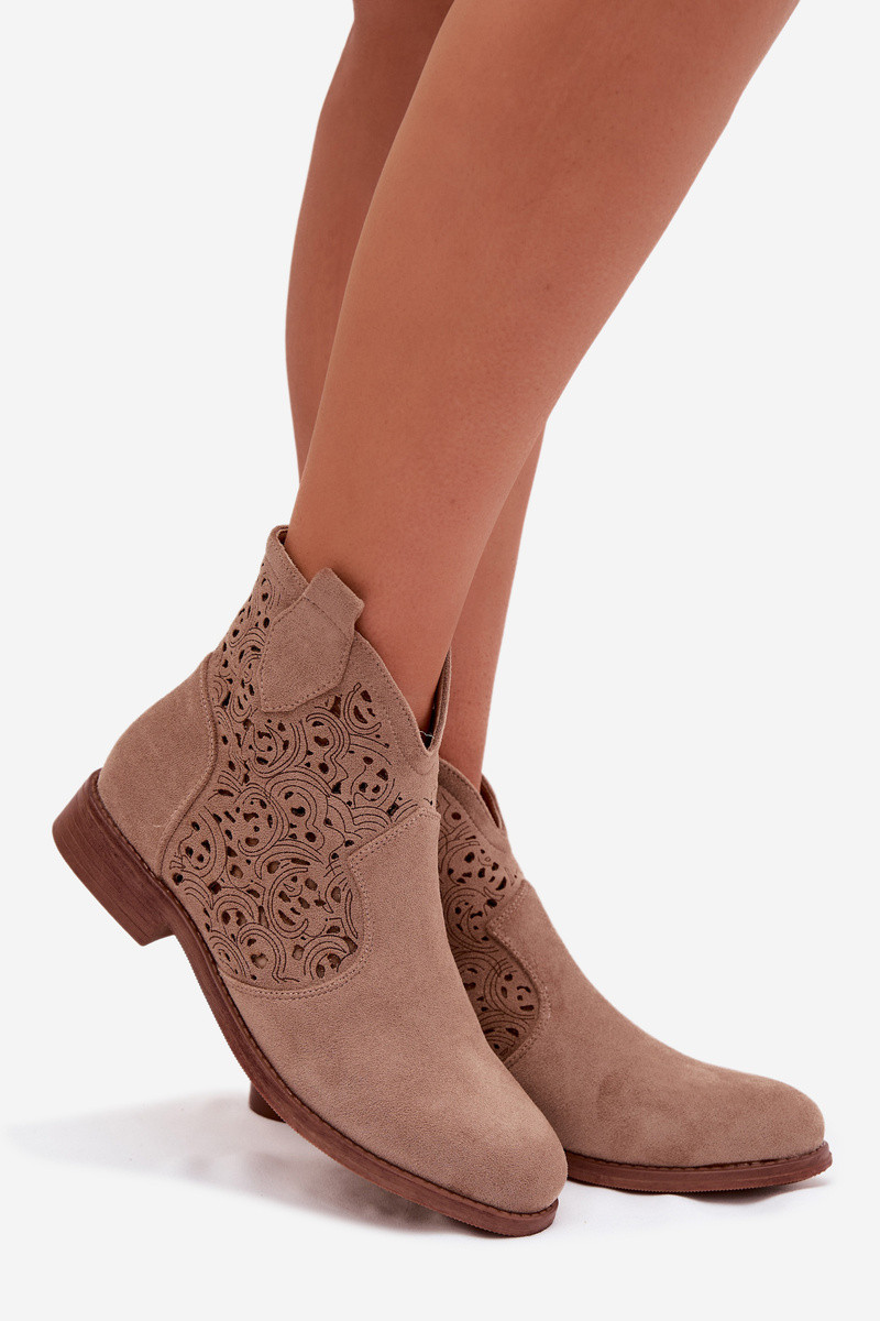 Ajourierte Damen-Stiefeletten mit breiten Absätzen S.Barski HY61-8026 sandfarbene Farbe