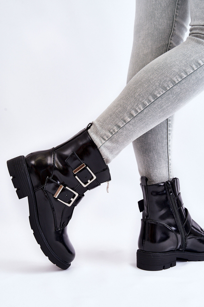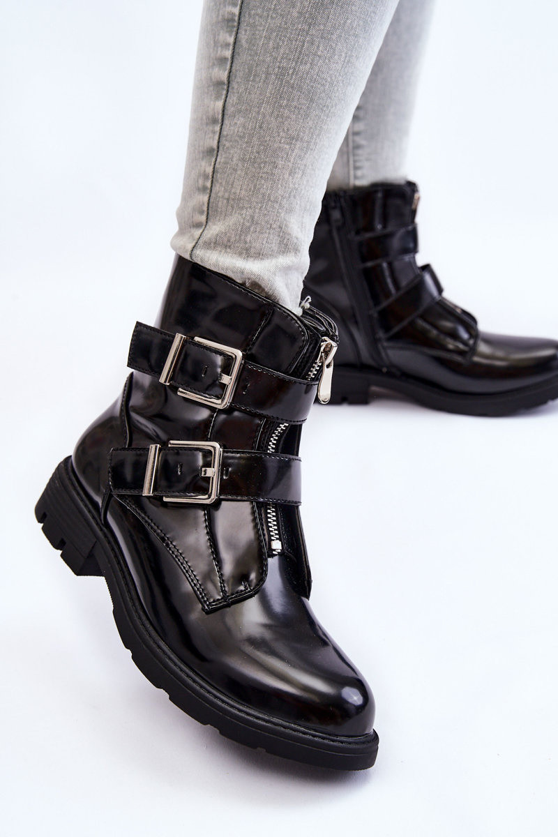 Damen gefütterte Stiefeletten mit breiten Absätzen und Reißverschlüssen schwarz Joshie