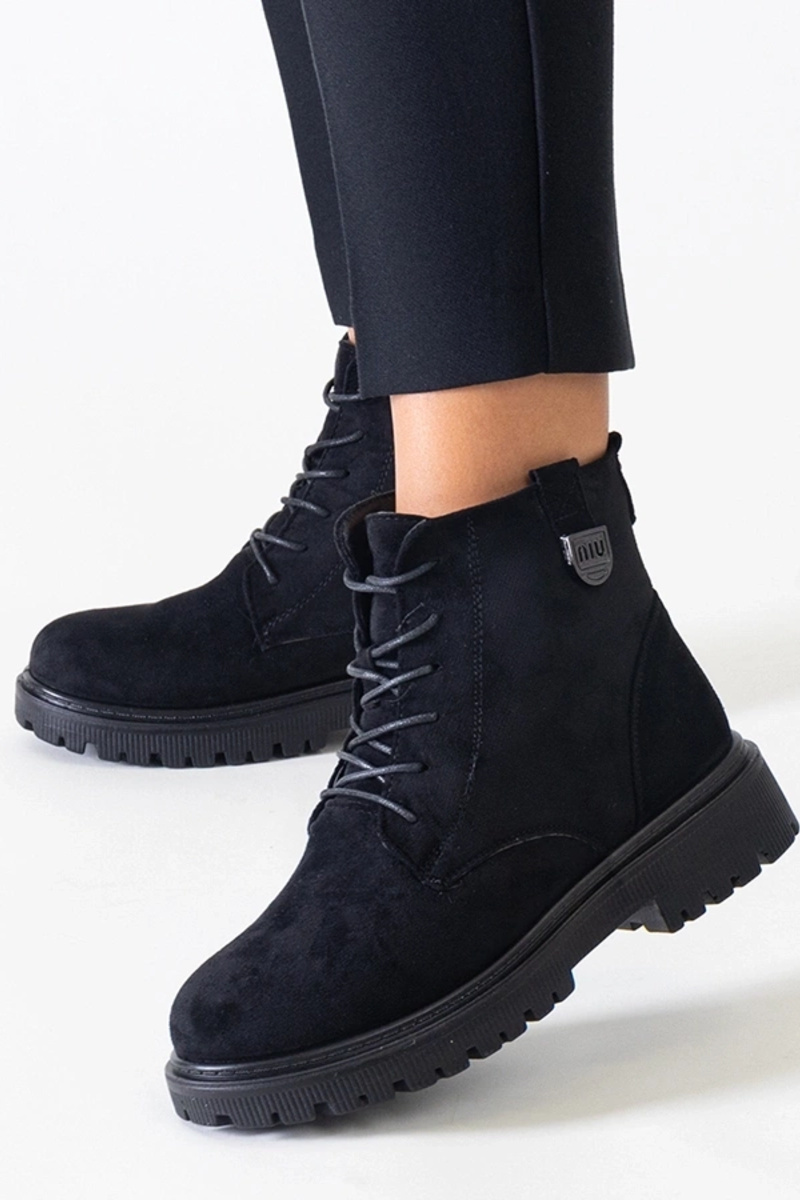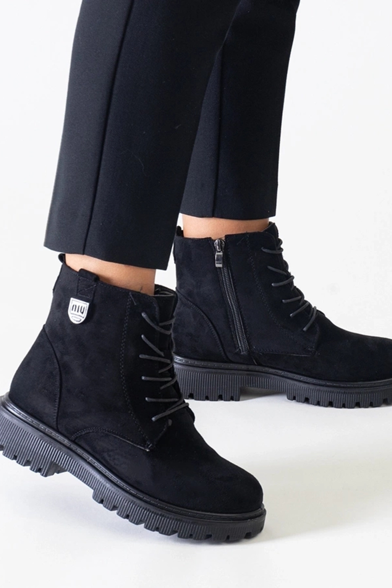 Schwarze Arbeitsstiefel aus Kunstwildleder Leonora auf Plattform