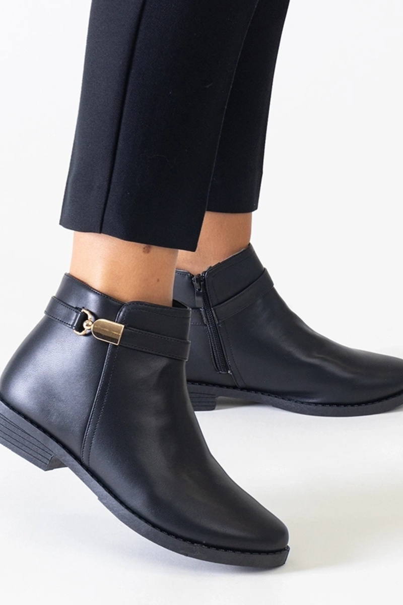 Schwarze Stiefel mit goldenen Einsätzen, Kunstleder Casetra
