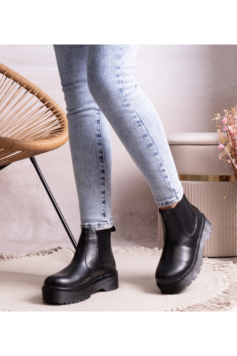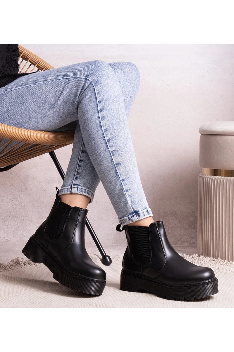 Lederstiefeletten mit fester Sohle SchZuarz und-Violette Farbe Elkiza
