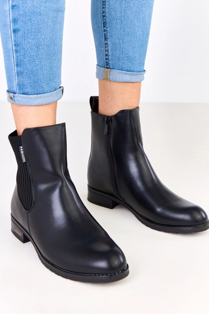 Schwarze Stiefeletten auf flacher Sohle mit elastischem Einsatz, Gres