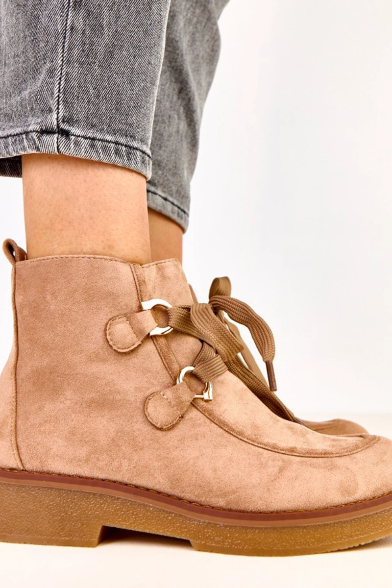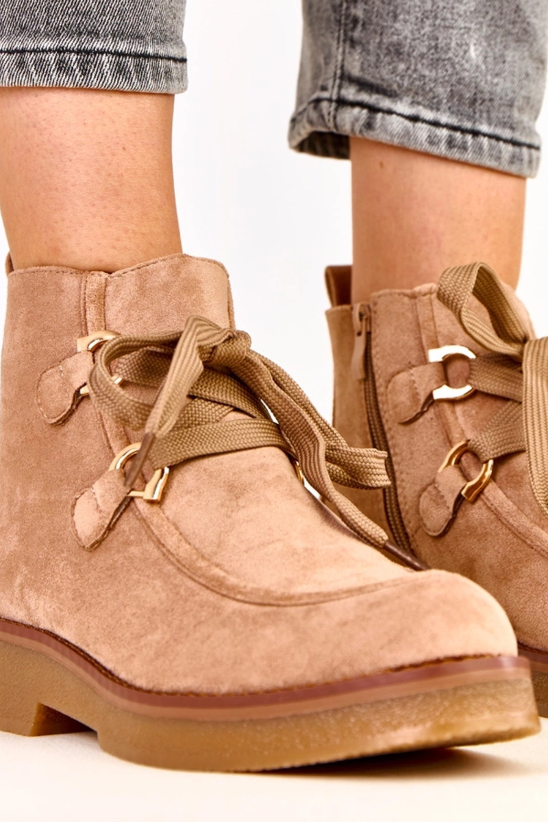 Beige warme Stiefel mit dekorativen Schnürsenkeln, Katrins